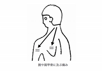 肩こり・首の痛みは、首の骨(頚椎)が変形し神経が圧迫されることで生じるものと、それ以外の原因で生じるものに分けることができます。神経が圧迫されることで生じる痛みは、首周囲の痛みに加え肩甲骨や腕にも痛みが生じる(図)ことが多く、それ以外が原因の痛みと区別することができます。神経が圧迫される病気には頚椎症性脊髄症、頚椎椎間板ヘルニア、腫瘍(良性、悪性)、感染症(骨や椎間板にばい菌がつくこと)などがあります。これらの病気は放置しておくと手足が麻痺してしまう危険性があります。従って、首周囲の痛みに加え肩甲骨や腕の痛みがある場合は、レントゲン検査だけでは不十分でMRIによる精査を行う必要があります。首周囲の痛みのみの場合は、頚椎の変形や筋肉の疲労によるものがほとんどですが、稀に他の病気によるものもありますので、治療を行っても治らない場合は精密検査を行う必要があります。